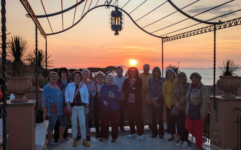 Am Abend, auf der Dachterrasse unseres Hotels, konnten wir mit eigenen Augen sehen, wie schön der Sonnenuntergang vor der Kulisse Capris ist – und sangen gemeinsam: „Wenn bei Capri die rote Sonne im Meer versinkt…“