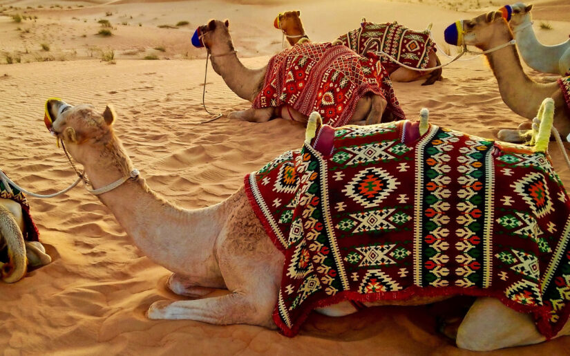 Es wird rasant! Heute fahren wir mit Wüsten-Jeeps in die Wüste von Dubai. Die professionellen Fahrer jagen die Jeeps gekonnt die Dünen auf und ab und der Adrenalinspiegel steigt! Wir bleiben mitten in der Wüste stehen um Fotos zu machen und die besondere Atmosphäre der Wüste zu spüren. Wir können sogar ein paar Kamele an uns vorbeiziehen sehen! Als nächstes fahren wir in ein Wüstencamp, hier jagt ein Highlight das andere. Wir haben die Möglichkeit auf einem Kamel zu reiten, mit einem Board die nächste Düne hinunterzufahren und während des Abendessens finden zahlreiche traditionelle Tanzaufführungen statt und ein Feuerspucker zeigt sein Können.