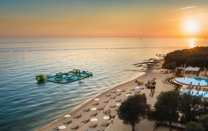 Das Hotel bietet einen hoteleigenen Privatstrand. Der Strandservice dort mit Sonnenliegen und Sonnenschirmen (Zwei Liegen und ein Sonnenschirm pro Doppelzimmer; eine Liege und ein Sonnenschirm pro Einzelzimmer) kostet 12,-€ pro Tag und ist vor Ort zu bezahlen. Am Pool stehen Liegen und Sonnenschirme von 9:00 Uhr bis 18:00 Uhr bereit.