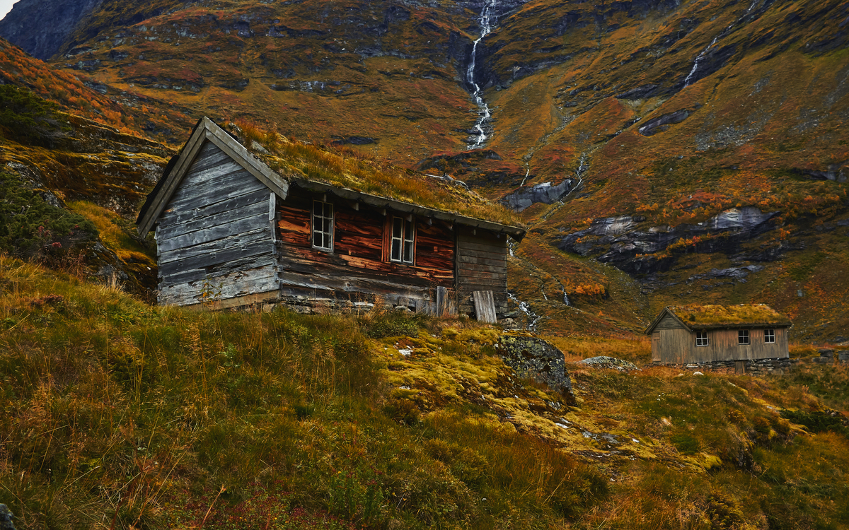 Sie verlassen Bergen und folgen dem Hardangerfjord ostwärts. Apfelbäume am Ufer tragen die letzten Früchte, Nebelstreifen ziehen über das ruhige Wasser. Der Hardangerfjord ist Norwegens zweitlängster Fjord und zählt zu den vielfältigsten Naturregionen des Landes. Mit seinen rund 179 Kilometern Länge zieht er sich vom offenen Atlantik bei Bergen tief ins Landesinnere – flankiert von hohen Bergen, fruchtbaren Ufern und eisbedeckten Höhenzügen. Kleine Höfe schmiegen sich an die Hänge, eingerahmt von steilen Felsen und weitläufigen Wäldern, die im Indian Summer wie mit Feuer bemalt wirken. Auf Ihrer Route entlang des Fjords überqueren Sie die imposante Hardangerbrücke, eine der längsten Hängebrücken Europas. Von ihr aus eröffnet sich ein weiter Blick auf den stillen Fjord, eingerahmt von Berghängen und – in der Ferne – den weiß glitzernden Gletschern des Folgefonna-Nationalparks. Tief im Herzen der westnorwegischen Gebirgslandschaft, am Übergang von den fruchtbaren Ufern des Hardangerfjords zur kargen Hochebene der Hardangervidda, verbirgt sich eines der beeindruckendsten Naturwunder des Landes: der Vøringfossen. Mit einer Gesamthöhe von 182 Metern, davon 145 Meter freier Fall, gehört er zu den höchsten und bekanntesten Wasserfällen Norwegens – und ist zugleich ein Sinnbild für die rohe Kraft und Schönheit der nordischen Natur. Die Hochebene von Hardangervidda bietet weite Horizonte: Das Heidekraut glüht in rötlichen Tönen, das Licht wird sanfter, der Wind trägt den Duft von Flechten und Felsen. Langsam senkt sich der Tag, wenn Sie über kleine Gebirgsstraßen Richtung des Hallingdal fahren.