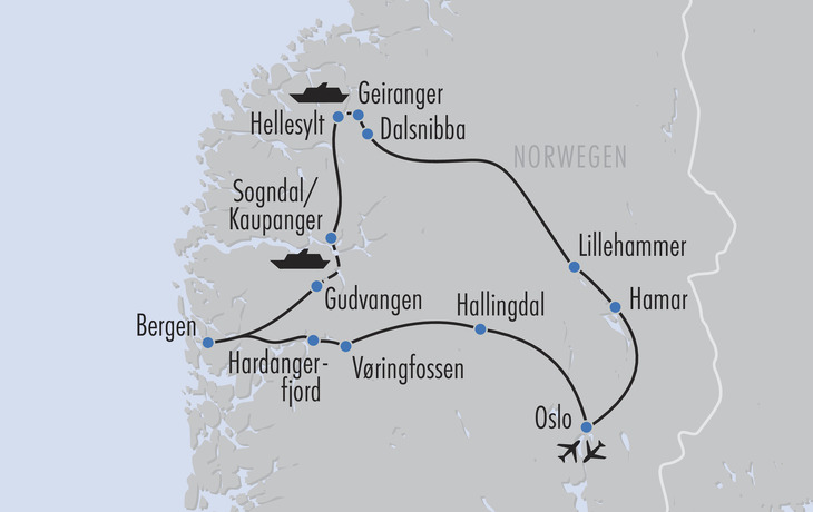 • Stanglmeier-Erlebnisprogramm inkl. 6 Erlebnistagen mit örtlicher Reiseleitung: Hei Oslo! (Stadtbesichtigung Oslo), Malerische Zeitreisen (Besichtigung Lillehammer inkl. Besuch Freilichtmuseum Maihaugen/Olympisches Museum & Dalsnibba inkl. Geiranger Skywalk), Fjordtraum (Fjordfahrt Geirangerfjord inkl. Sieben Schwestern), König der Fjorde (Fjordfahrt Sognefjord), Fjordhauptstadt (Stadtbesichtigung Bergen inkl. Fløibahn) & Naturgewalten (Hardangerfjord, Vøringfossen & Hardangervidda)