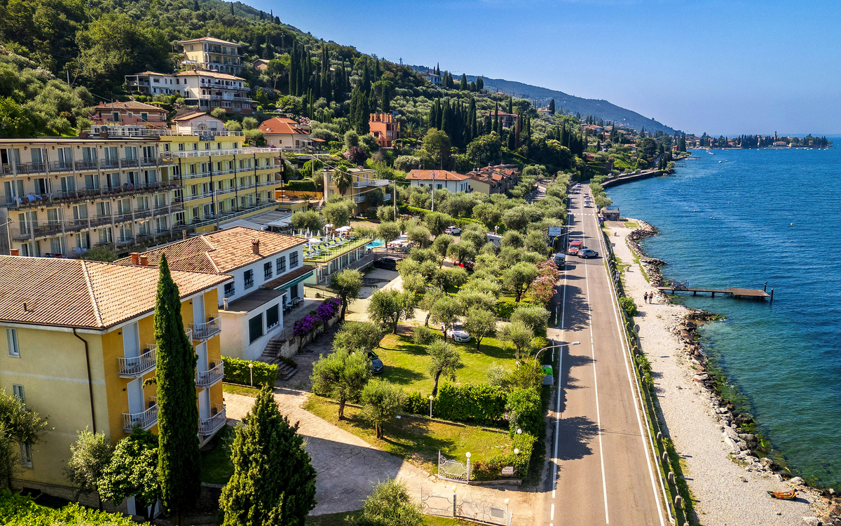 Das Hotel Internazionale (oder vergleichbar) liegt eingebettet in eine großzügige Gartenanlage direkt am Ufer des Gardasees. Die Zimmer sind komfortabel eingerichtet. Der Außenpool mit Sonnenterrasse, das Restaurant mit Blick auf den See sowie die Nähe zum Ortszentrum von Torri del Benaco (ca. 20min zu Fuß) machen das Hotel zu einem idealen Ausgangspunkt für entspannte Urlaubstage. Weitere Informationen finden Sie auf der Hotelwebseite.