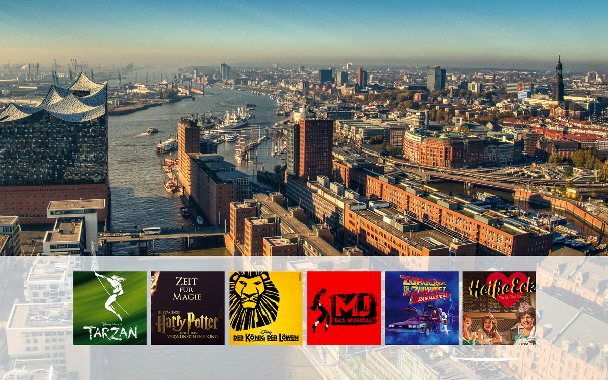 - Auf Wunsch Musical-/Theater-Besuch: „Der König der Löwen“, „MJ – Das Michael Jackson Musical“, „& Julia – Das Pop-Musical“, „Zurück in die Zukunft“, „Harry Potter und das verwunschene Kind“ oder „Heiße Ecke – Das St. Pauli Musical“