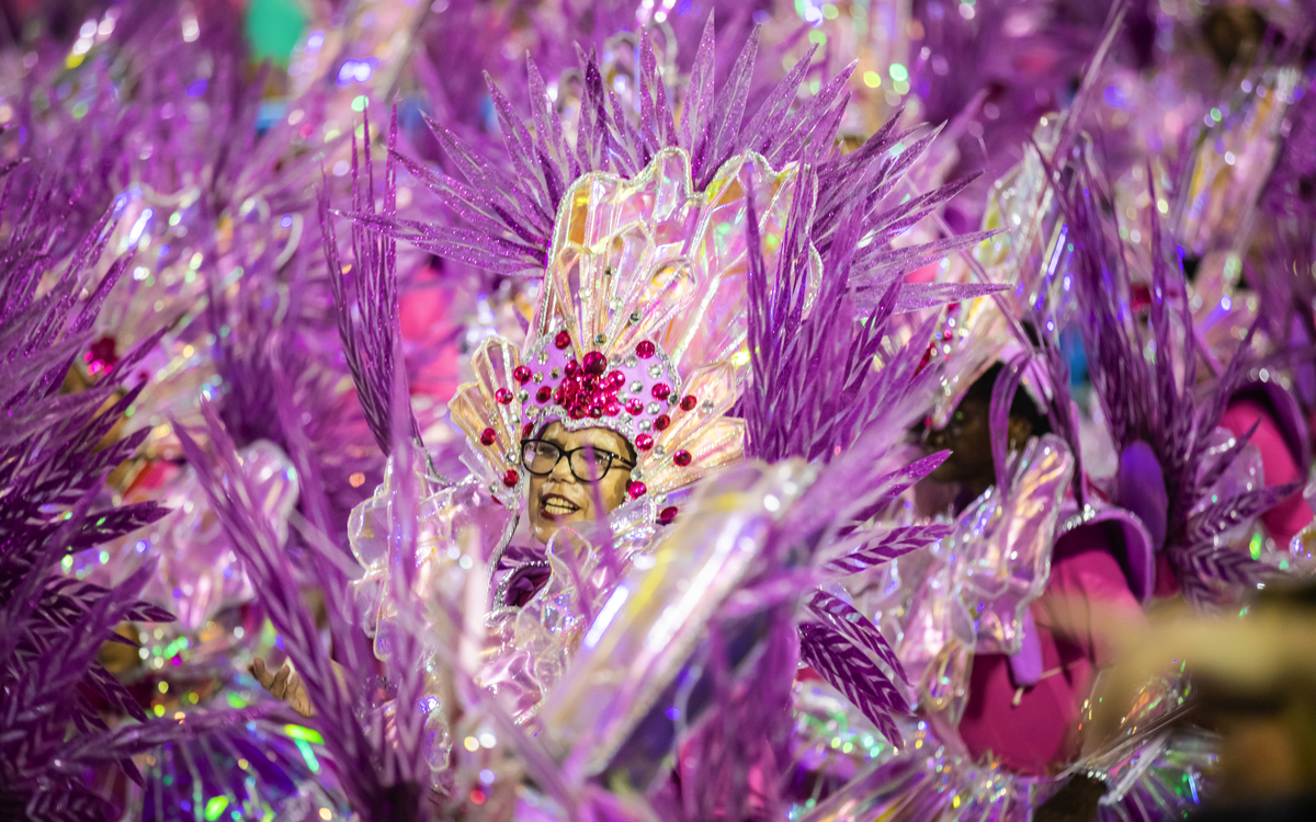 Der Karneval in Rio ist ein fünftägiges Fest, das vor der Fastenzeit (Aschermittwoch) stattfindet und tief in der brasilianischen Kultur verwurzelt ist. Der Höhepunkt sind die berühmten Paraden der Sambaschulen, die im Sambódromo Marquês de Sapucaí stattfindet– einer eigens für den Karneval gebauten Arena mit 700 Meter langer Paradestrecke. Es ist das bekannteste und spektakulärste Karnevalsfest der Welt. Über 12 der besten Sambaschulen Rios treten mit tausenden Tänzern, Musikern und spektakulären Wagen gegeneinander an. Jede Parade erzählt ein Thema mit einer Choreografie, opulenten Kostümen und Live-Samba-Musik. Die Paraden finden sonntags und montags statt und dauern die ganze Nacht. Eine Jury bewertet die Shows – der Sieger wird am Aschermittwoch gekrönt. Hunderte „Blocos de Rua“, eine Art Straßenkarneval, ziehen durch die Stadtteile – spontane Umzüge mit Live-Musik, offenen Bühnen und feiernden Menschen in bunten Verkleidungen.