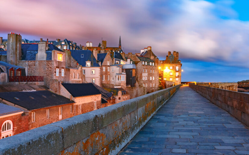 In der Hafenstadt Saint–Malo locken charmante enge Gassen, schöne Strände und imposante Gebäude. Die Besonderheit an dieser bretonischen Schönheit: die Altstadt ist von Granitmauern umgeben. Auf diesen Stadtmauern, den Überresten einer ehemaligen Wehranlage, können Besucher spazieren gehen. Der Weg nennt sich chemin ronde und bietet einen atemberaubenden Blick auf den Atlantik und den Strand zur einen sowie der Stadt zur anderen Seite. Indes dominieren die Türme und Zinnen der einstigen Festigungsanlage des Stadtbildes. Sehr sehenswert ist auch die Kathedrale Saint–Vincent im Zentrum.