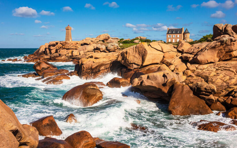 Spektakuläre Klippen, feine Sandstrände, einsame Buchten: Wer die bretonische Küste erlebt, kommt nicht mehr aus dem Staunen raus. Am besten lässt sie sich zu Fuß erkunden. Die Côte de Granit Rose verdankt ihren Namen dem Farbspiel, das insbesondere bei Sonnenschein von den Kippen und Felsen der Küste ausgeht. Der rötlich schimmernde Granit wird dann zu einem kräftigen Kupfer und verwandelt den Küstenabschnitt zwischen der Insel Bréhat und Trébeurden zu einem absoluten Highlight in der Bretagne.