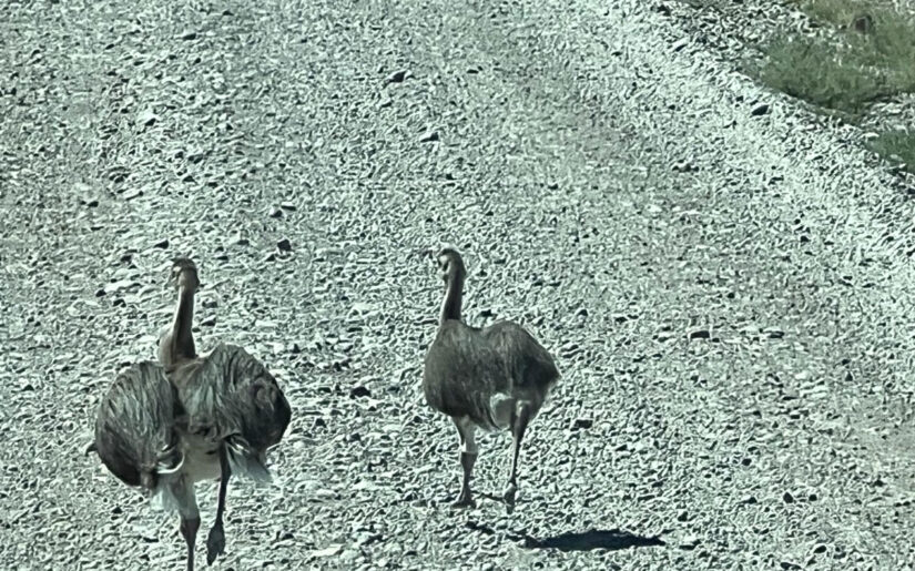 Durch die endlose Steppe erreichten wir heute die Grenze von Argentinien. Auf unserem Weg trafen wir immer wieder auf wilde Tiere wie Guanacos, Nandus oder Kondore – es blieb stets spannend! Zur Mittagszeit machten wir ein Picknick inmitten einer weiten, freien Landschaft, wo kaum Autos vorbeifuhren und Menschen zu sehen waren. Die Vegetation präsentierte sich trocken und karg, doch die Schönheit der Landschaft ließ uns innehalten und staunen.