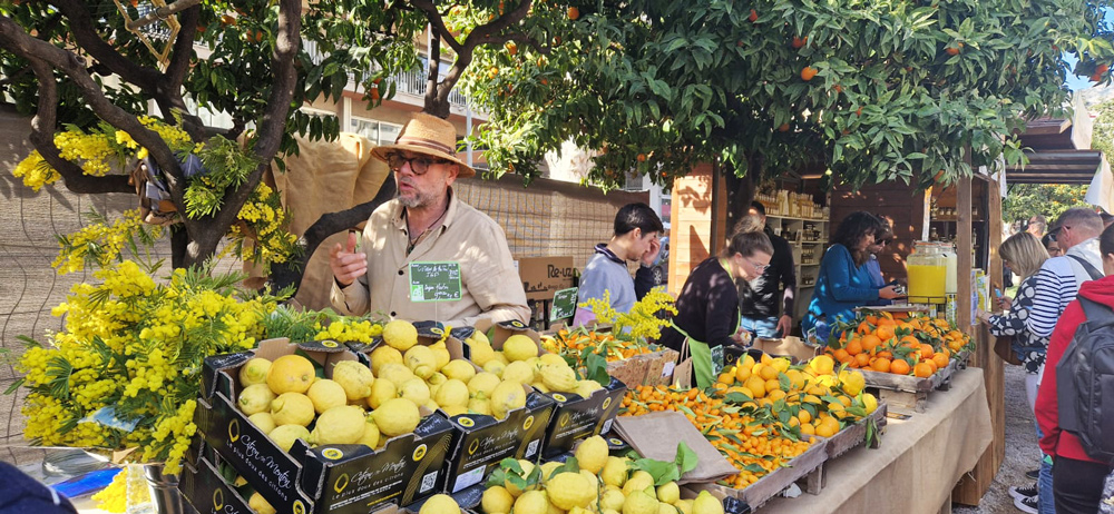 Menton, diese wunderschöne idyllische Stadt an der der Cote d’Azur verwandelt sich zu dieser Zeit in einen Rausch der Sinne. Die ganze Gegend riecht nach Zitronen und Mandarinen, das farbenfrohe Gelb und Orange der Früchte ist überall zu sehen.